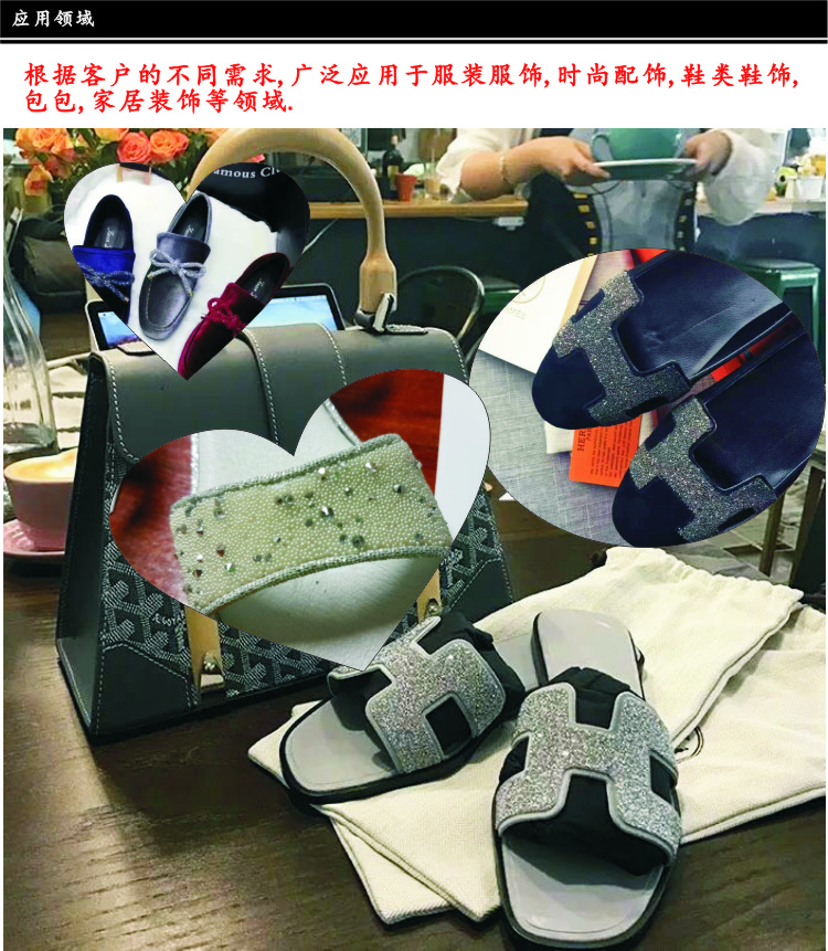 手機、筆記本、鞋飾,紙筒等光滑表面可用E6000膠或AB膠粘貼,膠水不需太多,越薄越好、涂均貼上去即可。高檔物品如怕?lián)p壞,可先貼保護膜,如手機、筆記本等。還可以裝飾家居,門框,移門等等