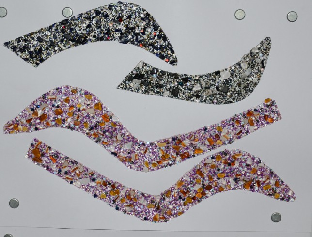 鉆下面一層透明熱容膠、非直接可貼;需加熱,熔后有粘性,可用燙畫機(jī)或者壓燙機(jī)或者電熨斗加熱,怕燙壞的可在鉆上加張布再加熱。